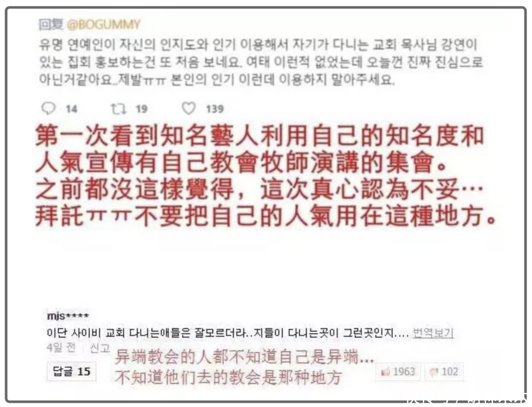 但万万没想到,韩媒却扒出朴宝剑是某邪教的忠实信徒,2017年,朴宝剑发文宣传了某邪教的集会,该邪教早在1991年就被大韩耶稣教长老会定为异教。